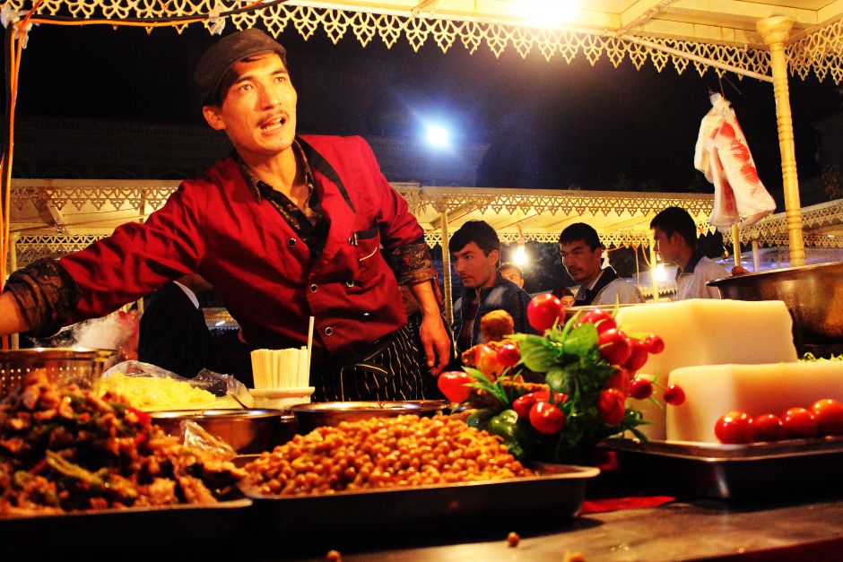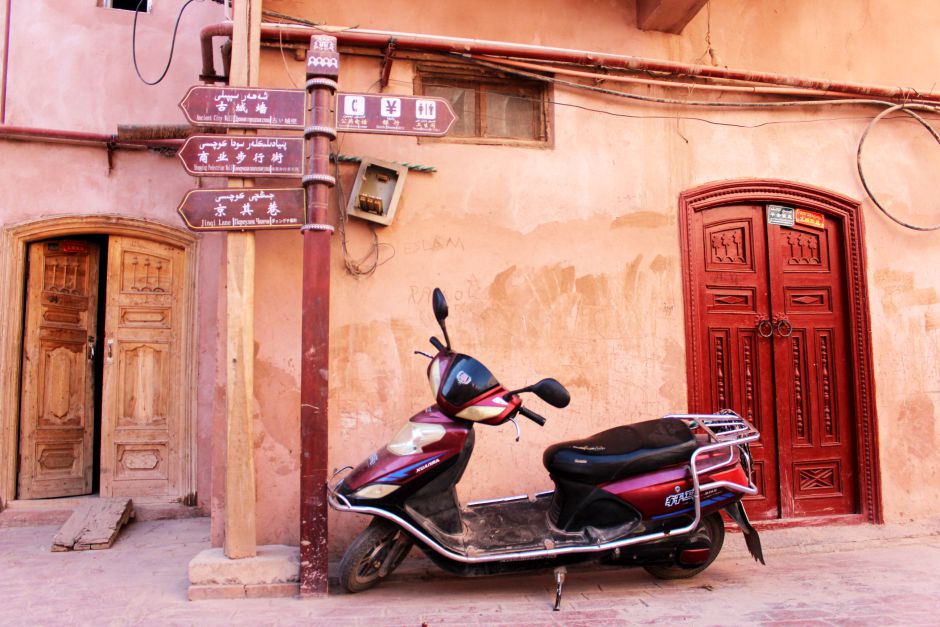Today, the walls of Kashgar’s winding streets are inscribed with Koranic verses under latticed arches. Uyghur bookshops abound. Women on motorbikes and dressed in the unique local style—long dresses, elaborately arranged headscarves, kohl-lined eyes, high-heeled boots—weave past market traders dishing out spicy chickpeas, lamb kebabs, and freshly cooked bread.