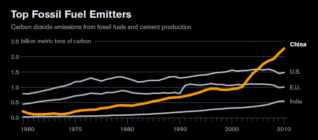 China says it needs to continue rapid economic development to ensure all its people benefit. Responsibility for solving climate change should be shouldered primarily by the U.S. and European nations since they produced the bulk of emissions that cause global warming during their industrialization, China said in a 2011 white paper. Per capita energy consumption in China was less than a third of the U.S. in 2011 and about two thirds of the European Union, according to World Bank data.